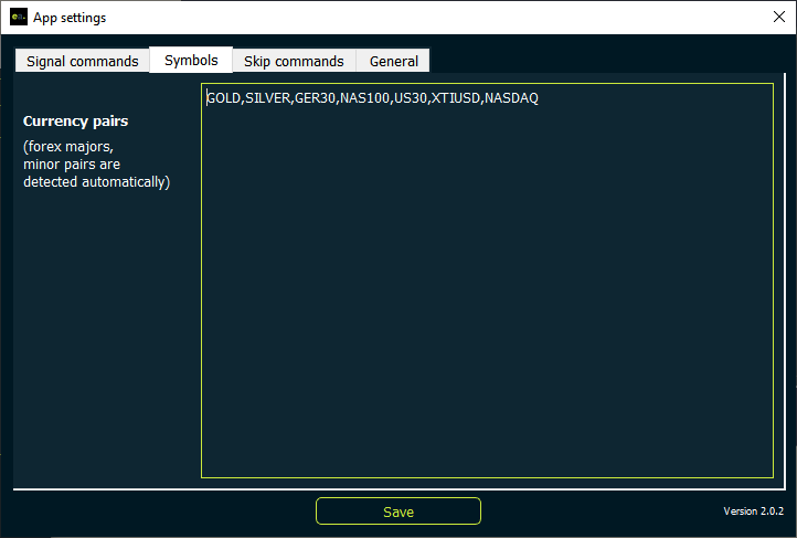 In this section, users can define custom symbols that are available in telegram signals. By default, the copier will recognize most of the commonly used forex pairs and Crypto pairs. However most of exotic currency pairs, indexes, commodities, futures and new crypto pairs will have to be added here.