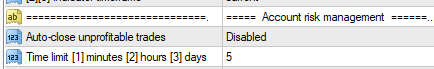Close losing trades after trading hours [2]Auto-closing feature is enabled. Specify hours in time limit input.